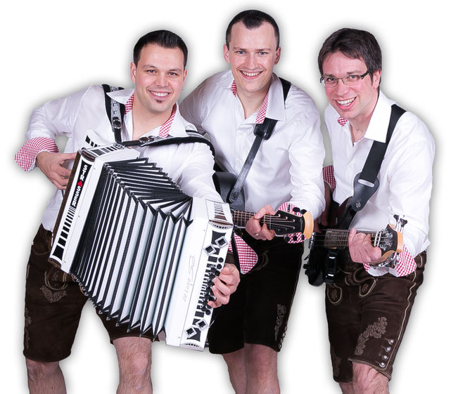Mit Rainer am Bariton und E-Bass trumpfen Oli und Udo in der Trio-Besetzung richtig auf! Rainer ist für die tiefen Töne zuständig und mit seiner Stimme und dem dann 3–stimmigen Gesang haben die drei Jungs den perfekten, harmonischen Sound. Erstklassig für fetzige Volksmusik, Volxrock, Schlager und Fetenhits!